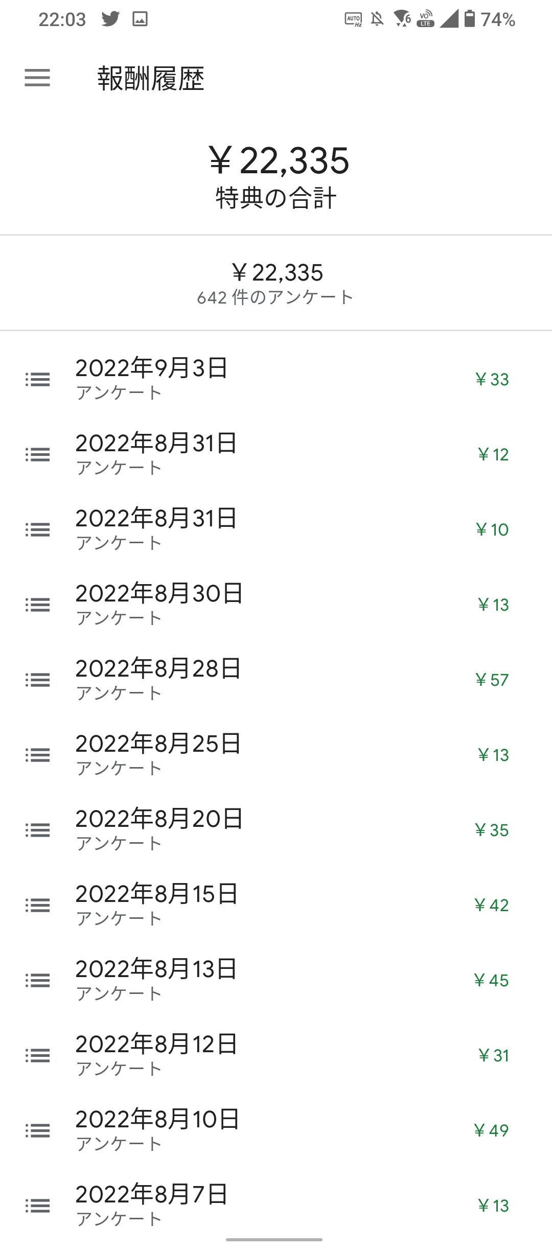 すまん先週アプリ入れたがアンケート一回も来てないんやが