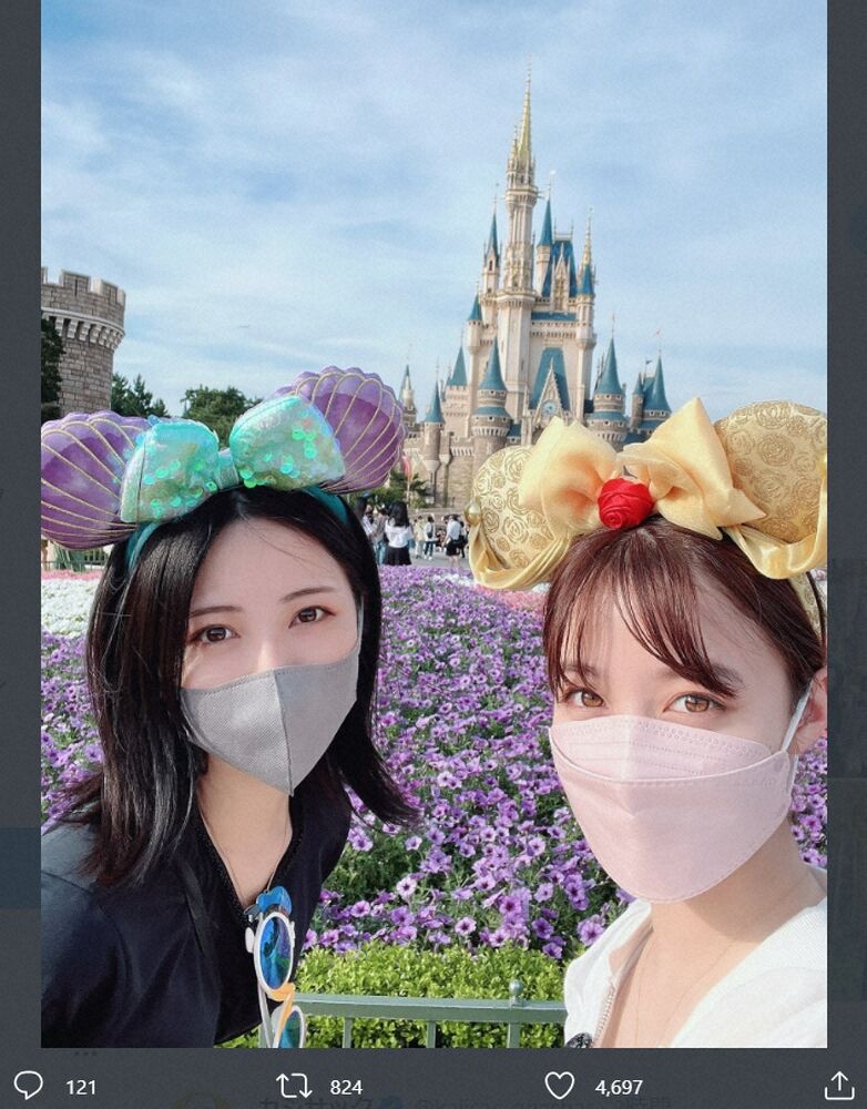 このツイートに「このふたりがディズニーやばい!!!」「カンナとミナミ美しすぎる…」「最高なんですけど」「天使と天使が夢の国に行ってるだと…?!」「美少女しかいない」「尊いの極み」と反響が寄せられ、わずか10分で「いいね!」が1万5千件を超えるなど話題となった。